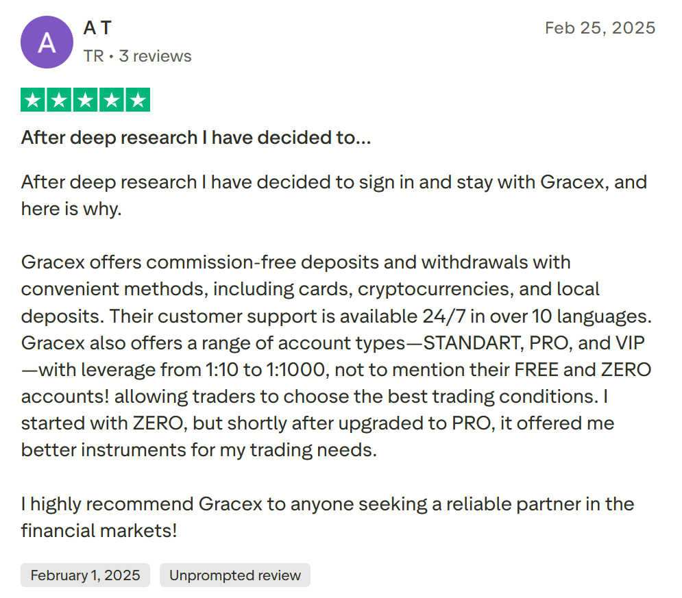 Большинство отзывов о Gracex подчёркивают, что модель STP обеспечивает надёжную обработку ордеров. Система отправляет заявки напрямую поставщикам ликвидности, минуя внутренние задержки. Это снижает влияние брокера на процесс торговли и позволяет трейдеру работать с минимальным вмешательством.